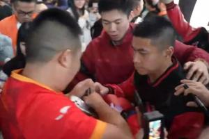 体育资讯11月09日讯 昨日中甲收官战,重庆铜梁龙客场2-0战胜上海嘉定汇龙,以联赛第二冲超成功。今日重庆铜梁龙荣耀返渝,机场球迷热情洋溢。