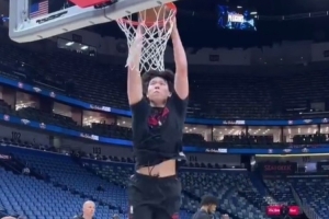 给你打出名堂了!鹈鹕13号秀奎因突破对抗上篮再打成2+1!