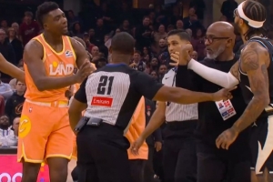 相当极限!唐斯关键抛投被韦尔大帽扇出 裁判回看是好帽!
