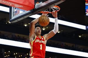 新鹰王起飞!杰伦·约翰逊封盖霍金斯 随后一条龙完成滑翔暴扣