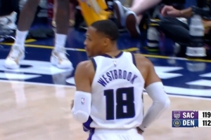 针锋相对!威少底角三分轰进 约基奇弧顶三分迅速回应